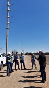 La visita sirvió para ver los avances en el montaje de la nueva línea aérea de alta tensión que une la Subestación Glew con la nueva Subestación Bachofen. Se trata de una red de 132 kV, que comprende 22 km de doble terna mixta, 15 km de red subterránea y 7,5 km de red aérea.