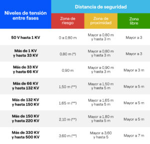- Las distancias mínimas de seguridad, no solo aplican a las ramas o las personas, también a las herramientas y equipos que vayas a utilizar (como escaleras, andamios, sogas, o hidroelevadores).