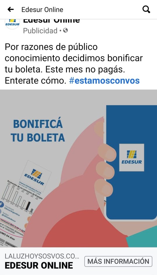 Aclaramos a los usuarios que todas las iniciatiavas digitales de Edesur se gestionan exclusivamente bajo el dominio https://www.edesur.com.ar y son promocionadas y visibles para todos los usuarios en su página oficial de Facebook «Edesur Argentina».