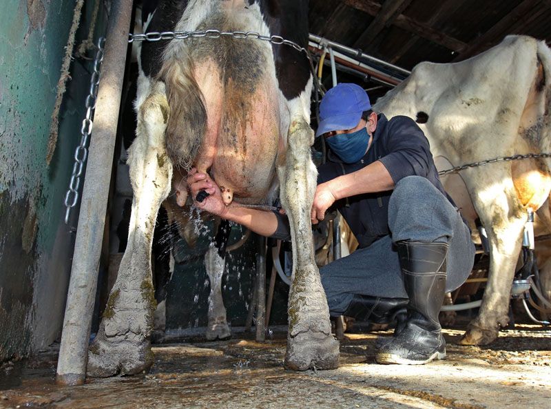 El ordeñe de animales se realiza todos los días, desde temprano.
