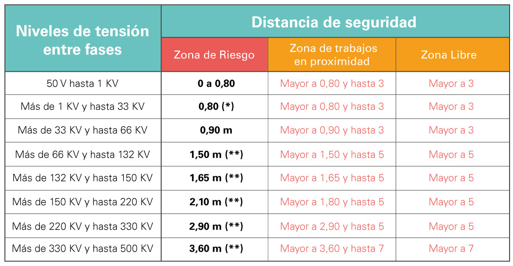 Al maniobrar los equipos de elevación, manutención o excavación en la proximidad de instalaciones con tensión, hay que estar seguros de que por los desniveles del terreno no hará contacto con las instalaciones.