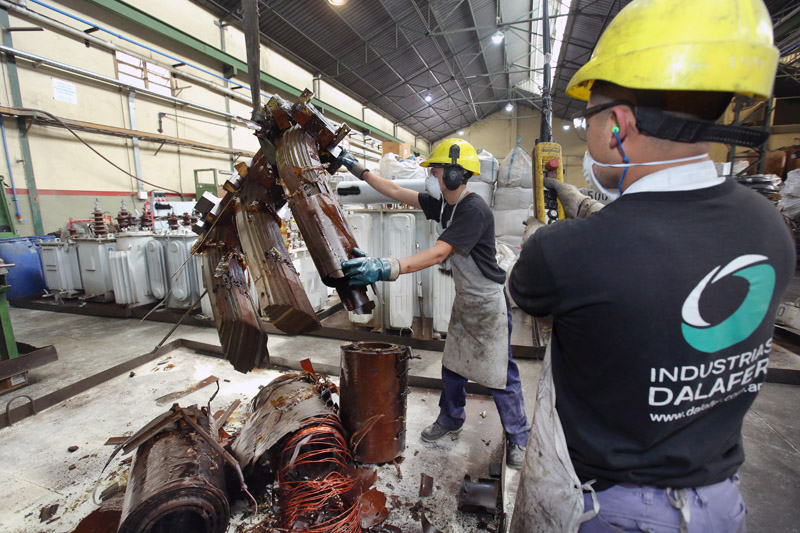 Desde hace casi cinco años, Edesur y Dalafer trabajan juntos en la gestión de residuos como transformadores eléctricos, medidores en desuso, cables inutilizados, maquinaria obsoleta y todo tipo de chatarra de hierro.