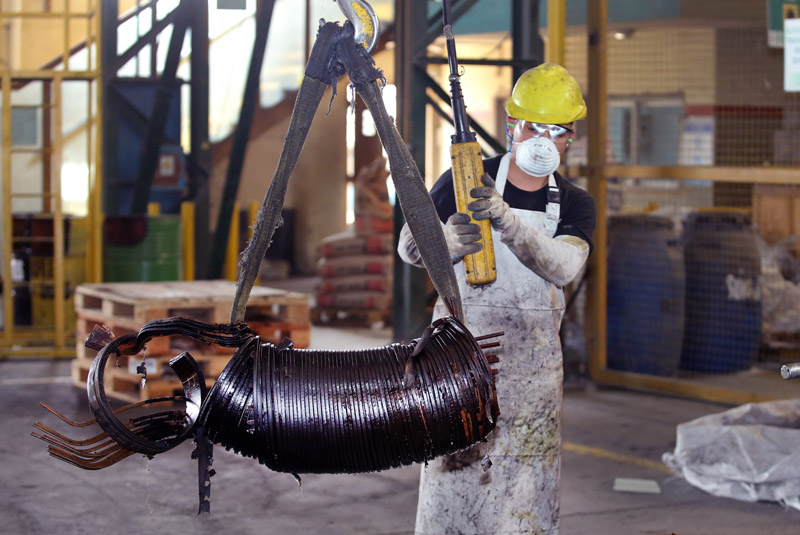 La chatarra de hierro es enviada a acería para su fundición, la chatarra de hierro silicio se envía a un recuperador, las bobinas que contienen cobre cubierto de papel impregnado en aceite son tratadas de manera tal que el papel es separado y enviado a un operador, mientras que el cobre es fundido para la fabricación de barras, planchuelas y otros.