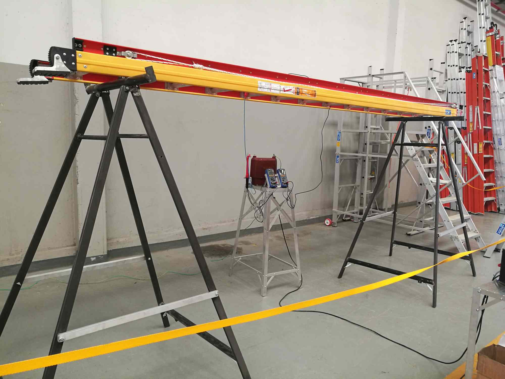 Las escaleras en cuestión tienen parantes laterales fabricados de fibra de vidrio, que es un aislante de electricidad y los peldaños de aluminio, que tienen un sistema antideslizante.
