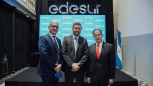 Gianluca Palumbo, gerente general de Edesur; Claudio Cunha y el presidente de Edesur, Juan Carlos Blanco.