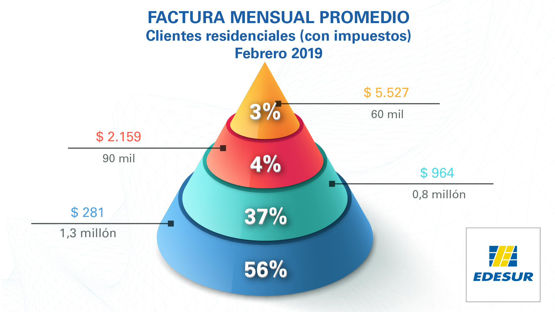 06/02/2019 Facturas promedio a clientes residenciales en febrero 2019Luego de las últimas modificaciones tarifarias dispuestas por los organismos reguladores, Edesur informa a sus...
